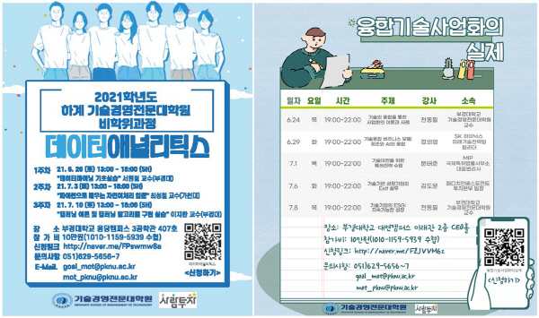 ºÎ°æ´ëÇб³ ±â¼ú°æ¿µÀü¹®´ëÇпø(MOT¡¤¿øÀå ÀÌ¿î½Ä)ÀÌ ¿À´Â 17ÀϱîÁö ºñÇÐÀ§°úÁ¤ÀÎ ¡®µ¥ÀÌÅÍ ¾Ö³Î¸®Æ½½º¡¯¿Í ¡®À¶ÇÕ±â¼ú»ç¾÷ÈÀÇ ½ÇÁ¦¡¯ Âü°¡ÀÚ¸¦ ¸ðÁýÇÑ´Ù.