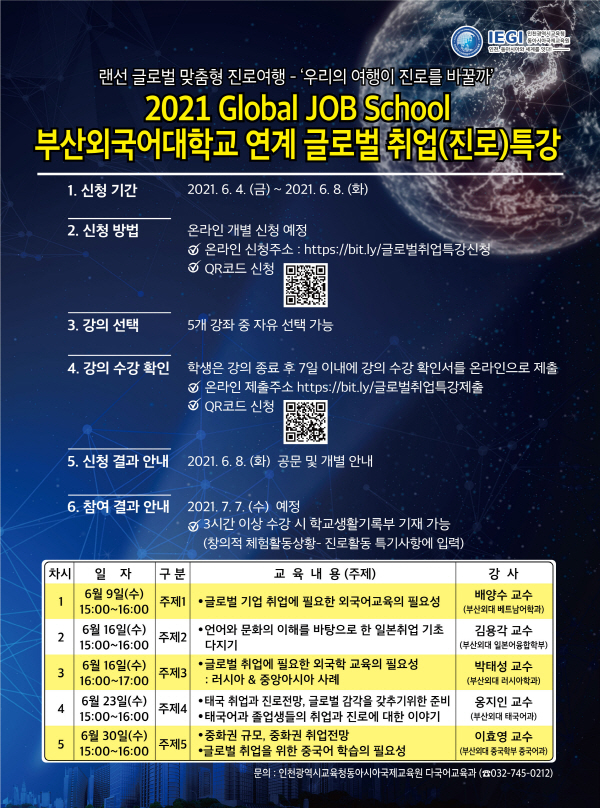 ºÎ»ê¿Ü±¹¾î´ëÇб³(ÃÑÀå ±èÈ«±¸)´Â Áö³ 9ÀÏ ÀÎõ±¤¿ª½Ã±³À°Ã» µ¿¾Æ½Ã¾Æ ±¹Á¦±³À°¿ø(¿øÀå À¯Ãæ·Ä)°ú ¿¬°èÇÏ¿© ÀÎõ Áö¿ª °íµîÇлýµéÀ» ´ë»óÀ¸·Î ¡®GLOBAL Ãë¾÷ Áø·Î Ư°¡¯À» °³ÃÖÇß´Ù°í 17ÀÏ ¹àÇû´Ù.