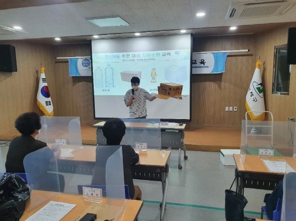 ¿¬»ê9µ¿, ÅëÀå ´ë»ó ÀÚ¿ø¼øÈ¯ ȯ°æ±³À° ½Ç½Ã¿¬Á¦±¸ ¿¬»ê9µ¿(µ¿Àå ÀåÁø)Àº Áö³ 23ÀÏ µ¿ ÇàÁ¤º¹Áö¼¾ÅÍ 3Ãþ ´ëȸÀǽǿ¡¼ ÅëÀå 37¸íÀ» ´ë»óÀ¸·Î ÀÚ¿ø¼øÈ¯ ȯ°æ±³À°À» ½Ç½ÃÇß´Ù.