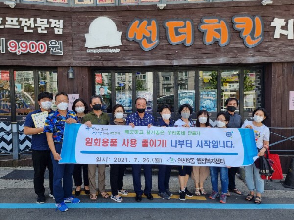 ¿¬»ê3µ¿, 1ȸ¿ëǰ »ç¿ë ÁÙÀ̱â Ä·ÆäÀÎ ½Ç½Ã¿¬Á¦±¸ ¿¬»ê3µ¿(µ¿Àå ¹Î¼±¹Ì)Àº 26ÀÏ ÅëÀå ¹× Á÷¿ø µî 15¸íÀÌ Âü¿©ÇÑ °¡¿îµ¥ °ñ¸ñ½ÃÀå »óÀÎ ¹× ÁֹεéÀ» ´ë»óÀ¸·Î ÄèÀûÇÏ°í ±ú²ýÇÑ ¿ì¸®µ¿³× ¸¸µé±â¸¦ À§ÇÑ 1ȸ¿ëǰ »ç¿ë ÁÙÀ̱â Ä·ÆäÀÎÀ» ½Ç½ÃÇß´Ù.
