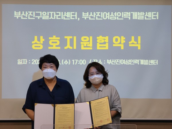 ºÎ»êÁø±¸ÀÏÀÚ¸®¼¾ÅÍ-ºÎ»êÁø¿©¼ºÀη°³¹ß¼¾ÅÍ, û³â ¹× °æ·Â´ÜÀý¿©¼º Ãë¾÷ Áö¿ø ¸Â¼ÕºÎ»êÁø±¸ÀÏÀÚ¸®¼¾ÅÍ(¼¾ÅÍÀå ³ë¿µ¹Ì)´Â 18ÀÏ ºÎ»êÁø¿©¼ºÀη°³¹ß¼¾ÅÍ(°üÀå ±è¹Ì¼÷)¿Í Áö¿ª ³» û³â ¹× °æ·Â´ÜÀý¿©¼ºÀÇ Ãë¾÷¿ª·®°È¸¦ À§ÇÑ ¾÷¹«Çù¾àÀ» ü°áÇß´Ù.