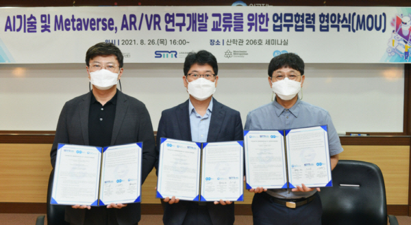 µ¿ÀÇ´ëÇб³(ÃÑÀå ÇѼöȯ) ÀΰøÁö´É±×·£µåICT¿¬±¸¼¾ÅÍ(¼¾ÅÍÀå Á¤¼®Âù)¿Í ½º¸¶Æ®°ü±¤¸¶À̽º¿¬±¸¼Ò(¼ÒÀå À±ÅÂȯ)´Â Áö³ 8¿ù 26ÀÏ µ¿ÀÇ´ë »êÇÐÇշ°ü 1Ãþ ÇÁ¶óÀÓ ÄÁº¥¼Ç ´Ù¸ñÀûȦ¿¡¼ ¿µ±¹ ¸Çü½ºÅÍ ¸ÞÆ®·ÎÆú¸®Åº´ëÇб³ Creative AR&VR Hub(¼ÒÀå Á¤Çü¼ö)¿Í ÀΰøÁö´É ¹× ¸ÞŸ¹ö½º µî ICT ºÐ¾ß ±â¼ú ±³·ù¿Í Àη¾缺À» À§ÇÑ Çù¾àÀ» ü°áÇß´Ù.