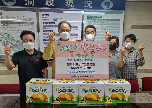 »ç¶û°¡µæÇÑ Ãß¼® ¸ÂÀ̸¦ À§ÇÑ¡°È¦·Î¾î¸£½Å ´Ù°ú¼¼Æ®¡±Àü´Þ9¿ù 7ÀÏ ÀÍÅõ½º±³È¸(´ãÀÓ¸ñ»ç ÀÌâ¿ì)´Â ºÎ»ê ³²±¸ ¿ëÈ£1µ¿ ÇàÁ¤º¹Áö¼¾ÅÍ(µ¿Àå ¿Àâ¼Û)¿¡ Ä«½ºÅ×¶ó »§ÀÌ Æ÷ÇÔµÈ ´Ù°ú¼¼Æ® 153¹Ú½º¸¦ Àü´ÞÇß´Ù.