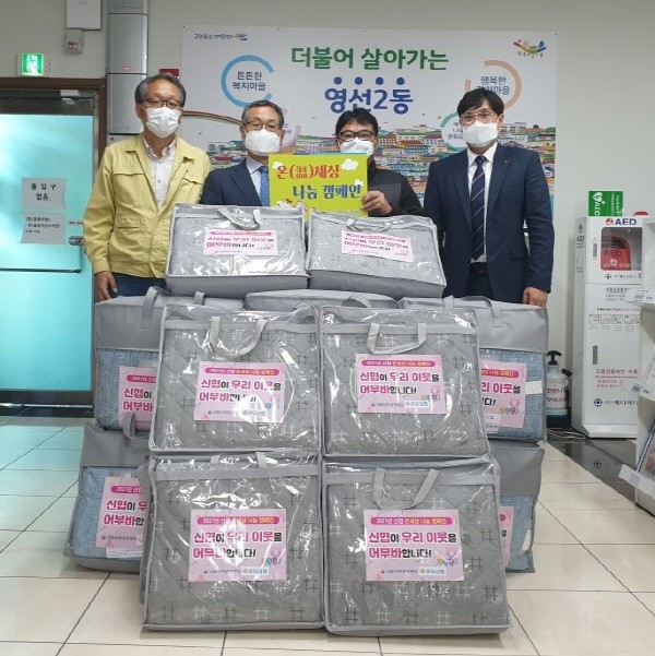 ¼º¸ð½ÅÇù ¿µ¼±2µ¿ ¿¡³ÊÁö ¼Ò¿Ü°èÃþ¿¡ µû¶æÇÑ ¿Â±â ³ª´®¿µµµ±¸ ¼º¸ð½ÅÇù(ÀÌ»çÀå ¼ÛÀçºÀ)Àº Áö³ 26ÀÏ ¡®2021³â ¿Â(è®)¼¼»ó ³ª´® Ä·ÆäÀΡ¯À¸·Î ÁֹεéÀÇ µû¶æÇÑ °Ü¿ï³ª±â¸¦ À§ÇØ ÀÌºÒ 8ä¿Í Àü±â¿ä 8並 ¿µ¼±2µ¿ ÇàÁ¤º¹Áö¼¾ÅÍ(µ¿Àå ÀÌ»óÁø)¿¡ ±âŹÇÏ¿´´Ù.