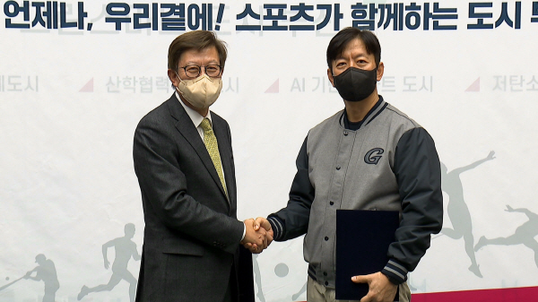 | ¹ÚÇüÁØ ºÎ»ê½ÃÀå(¿ÞÂÊ)°ú À̼®È¯ ·Ôµ¥ÀÚÀ̾ðÃ÷ ´ëÇ¥ÀÌ»ç(¿À¸¥ÂÊ)°¡ 25ÀÏ ¿ÀÈÄ ½Ãû ¼ÒȸÀǽǿ¡¼ »çÁ÷¾ß±¸Àå Àç°ÇÃàÀ» À§ÇÑ ¾÷¹«Çù·Â °øµ¿¼±¾ð¹® ¹ßÇ¥ ÈÄ ¾Ç¼ö¸¦ Çϰí ÀÖ´Ù. ºÎ»ê½Ã Á¦°ø