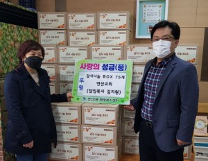 ¿¬»ê5µ¿, ¿¬»ê±³È¸ ¡®°¨»ç ³ª´® BOX¡¯ »ýÇÊǰ¼¼Æ® ±âŹ¿¬Á¦±¸ ¿¬»ê5µ¿(µ¿Àå ¹èµµ¿µ)Àº Áö³ 5ÀÏ ¿¬»ê±³È¸(´ãÀÓ¸ñ»ç ±èÁö¿ø)·ÎºÎÅÍ »ýÇÊǰ¼¼Æ® 75¹Ú½º(375¸¸ ¿ø »ó´ç)¸¦ Àü´Þ¹Þ¾Ò´Ù.