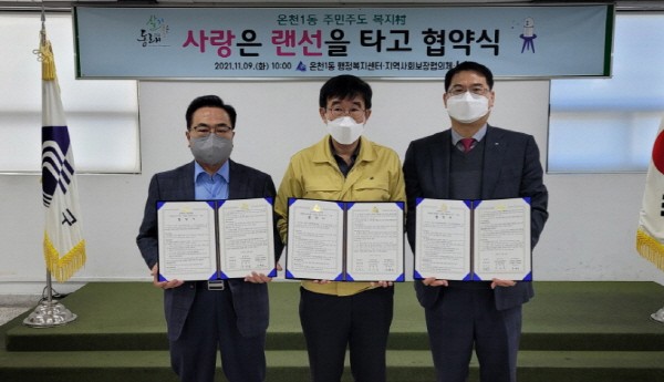 ¿Âõ1µ¿, KT¿Í ¡®»ç¶ûÀº ·£¼±À» Ÿ°í¡¯ »ç¾÷ ÃßÁø Çù¾àµ¿·¡±¸ ¿Âõ1µ¿ ÇàÁ¤º¹Áö¼¾ÅÍ(µ¿Àå °¼ö±Ù)´Â 11¿ù 9ÀÏ ¿Âõ1µ¿ Áö¿ª»çȸº¸ÀåÇùÀÇü(À§¿øÀå À¯¿µ¿Á), KT(´ëÇ¥ÀÌ»ç ±¸Çö¸ð)¿Í ¡®»ç¶ûÀº ·£¼±À» Ÿ°í¡¯ »ç¾÷ Çù¾àÀ» ü°áÇß´Ù.