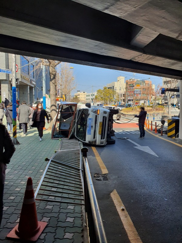 16ÀÏ °æÂû¿¡ µû¸£¸é Áö³ 15ÀÏ ¿ÀÈÄ 1½Ã²² ºÎ»ê ºÎ»êÁø±¸ ºÎÀüÁ¦1°¡µµ±³¿¡¼ ´õºÒ¾î¹ÎÁÖ´ç ÀÌÀç¸í Èĺ¸ÀÇ À¯¼¼Â÷°¡ ÀüµµµÇ´Â »ç°í°¡ ÀϾ´Ù. ÀÌ »ç°í·Î Â÷·®¿¡ ž½ÂÇß´ø ¿îµ¿¿ø 2¸íÀÌ ºÎ»óÀ» ´çÇÑ °ÍÀ¸·Î ÀüÇØÁ³´Ù. ÃÊÀ¾ ¹æ¸é Ãⱸ ±âÁØ, µµ·Î ¹Ù´Ú¿¡¼ »ç°í°¡ ³ ´Ù¸®ÀÇ ÃµÀå±îÁö ³ôÀ̰¡ 3.39~4.38£í´Ù. »ç°í Â÷·®Àº ³ôÀ̰¡ ¾à 4£í·Î, ´Ù¸® ¾Æ·¡¸¦ Áö³ª´ø Áß Â÷°¡ ³¤ µÚ Â÷·®ÀÌ ¾²·¯Áø °ÍÀ¸·Î ¾Ë·ÁÁ³´Ù. ÀÌ µµ·Î´Â Áø¡¤ÃâÀÔ·Î ³ôÀ̰¡ ³·Àº Å¿¿¡ Â÷·®³¢ÀÓ »ç°í°¡ Àæ¾Æ Æò¼Ò ºÎ»ê ´ëÇüÂ÷ ¿îÀüÀڵ鿡°Ôµµ ¾Ç¸í ³ôÀº °÷ÀÌ´Ù. 2016³âºÎÅÍ 5³â°£ À̰÷¿¡¼ Â÷·® ³¢ÀÓ »ç°í 28°ÇÀÌ ÀϾ´Ù.