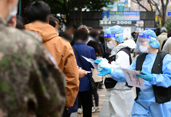 | º¸°Ç¼Ò¸¦ ãÀº ½Ã¹ÎµéÀÌ Äڷγª19 °Ë»ç¸¦ ¹Þ±â À§ÇØ ÁÙÀ» ¼°í ÀÖ´Ù. ±¹Á¦½Å¹®DB