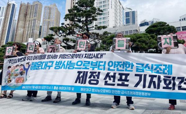 ¡®ÇØ¿î´ë±¸ ¹æ»ç´ÉÀ¸·ÎºÎÅÍ ¾ÈÀüÇÑ ±Þ½ÄÁ¶·ÊÁ¦Á¤¿îµ¿º»ºÎ¡¯´Â 4ÀÏ ºÎ»ê ÇØ¿î´ë±¸Ã» ¾Õ¿¡¼ ±âÀÚȸ°ßÀ» ¿°í ¹æ»ç´É ¾ÈÀü ±Þ½Ä °ü·Ã Á¶·Ê Á¦Á¤À» À§ÇÑ ÁֹΠ¹ßÀÇ ¼¸í ¿îµ¿¿¡ ³ª¼±´Ù°í ¹àÇû´Ù. À̵éÀº ¡°¿ì¸® ¾ÆÀ̵éÀÌ ¸ÅÀϰ°ÀÌ ¸Ô´Â ±Þ½Ä ½ÄÀç·á¸¦ ¹æ»ç´ÉÀ¸·ÎºÎÅÍ ¾ÈÀüÇÏ°Ô Á¦°øÇϱâ À§ÇØ ÁֹΠ¹ß¾È Á¶·Ê¸¦ ¸¸µé°íÀÚ ÇÑ´Ù¡±°í ¹àÇû´Ù.