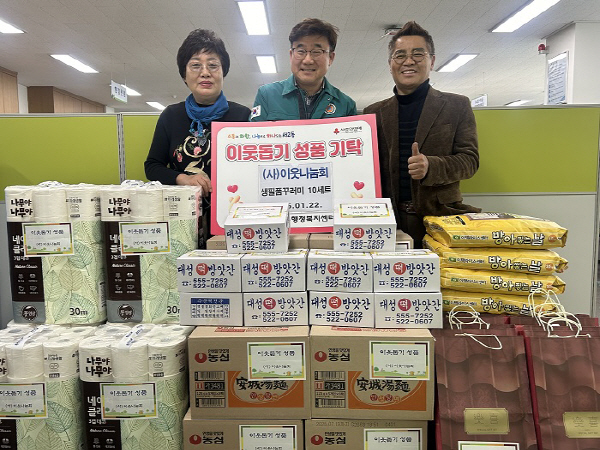 ºÎ»ê½Ã ±ÝÁ¤±¸ ¼2µ¿ÇàÁ¤º¹Áö¼¾ÅÍ´Â ±Ý»çȸµ¿µ¿ ¼ÒÀç (»ç)ÀÌ¿ô³ª´®È¸(ȸÀå °ÀçÁØ)¿¡¼ ¼³ ¸íÀýÀ» ¸Â¾Æ ¾î·Á¿î ÀÌ¿ôÀ» À§ÇØ ÀÌ¿ôµ½±â ¼ºÇ°(½Ò 10kg, ¶ó¸é 1¹Ú½º, ÈÀåÁö, »ýȰ¿ëǰ) 10¼¼Æ®¸¦ ±âŹÇß´Ù°í ¹àÇû´Ù.