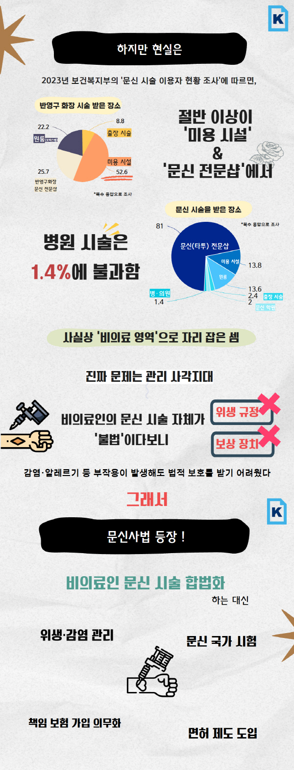 ¹®Á¦´Â °ü¸® »ç°¢À̾ú´Ù. ºñÀÇ·áÀÎ ¹®½Å ½Ã¼ú ÀÚü°¡ ¡®ºÒ¹ý¡¯ÀÌ´Ù º¸´Ï, Á¦´ë·Î µÈ À§»ý ±ÔÁ¤À̳ª º¸»ó ÀåÄ¡°¡ ÀÖÀ» ¼ö ¾ø¾ú´Ù. ÀÌ ¶§¹®¿¡ ½Ã¼ú ÈÄ °¨¿°¡¤¾Ë·¹¸£±â µî ºÎÀÛ¿ëÀÌ »ý°Üµµ ÇÇÇØ º¸»óÀ» ¹Þ±â ¾î·Á¿ü´Ù. ¹ýÀû º¸È£¸ÁÀÌ ¾ø¾ú´Ù. ÀÌ¿¡ À̹ø¿¡ Åë°úµÈ ¹®½Å»ç¹ýÀº ºñÀÇ·áÀÎ ¹®½Å ½Ã¼úÀ» ÇÕ¹ýÈÇÏ´Â ´ë½Å, ¹®½Å»ç ±¹°¡½ÃÇè°ú ¸éÇãÁ¦µµ¸¦ µµÀÔÇÏ°Ô Çß´Ù. ¶Ç À§»ý¡¤°¨¿° °ü¸®¿Í Ã¥ÀÓº¸Çè °¡ÀÔÀ» Àǹ«ÈÇß´Ù.