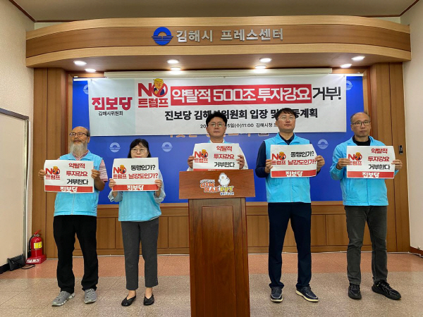 ±×·¯¸é¼­ ¡±´ëÇѹα¹Àº ¹Ì±¹ÀÇ Çö±Ý ÀÎÃâ±â°¡ ¾Æ´Ï´Ù. ¿Ö ±¹¹ÎÀÇ Ç÷¼¼¸¦ Çö´ëÆÇ Á¶°øÃ³·³ ¹Ì±¹¿¡ °®´Ù ¹ÙÃÄ¾ß Çϳª¡°¶ó¸é¼­ ¡±Æ®·³ÇÁÀÇ ¾àÅ»Àû ÅõÀÚ °­¿ä¿¡ ¸Â¼­ ±èÇØ ÁÖ¿ä °Å¸® °÷°÷¿¡¼­ Æ®·³ÇÁ °æÁ¦¾àÅ» ÀúÁö ±¹¹Î¼­¸í, Á¤´ç¿¬¼³È¸, ÃâÅð±Ù ½Ã°£ Çö¼ö¸· ¼±ÀüÀü, Á¦Á¶¾÷ ³ëµ¿ÀÚ °£´ãȸ µîÀ» ÇÏ¸ç ±èÇØ½Ã¹ÎµéÀÇ ºÐ³ë¸¦ ¸ðÀ¸°Ú´Ù¡°°í ¹àÇû´Ù.