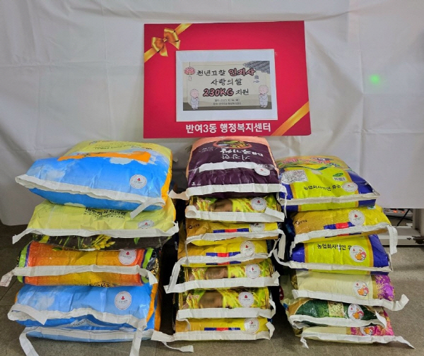 ÇØ¿î´ë±¸ ¹Ý¿©3µ¿ ¼ÒÀç ÀÎÁö»ç(ÁÖÁö ¹ý¼º½º´Ô)´Â Áö³ 14ÀÏ Áö¿ª ³» ¼Ò¿Ü°èÃþÀ» µ½±â À§ÇØ ¹é¹Ì 230kg(20kg 5Æ÷, 10kg 13Æ÷¡¤¾à 65¸¸¿ø »ó´ç)À» ¹Ý¿©3µ¿ ÇàÁ¤º¹Áö¼¾ÅÍ(µ¿Àå ½ÉÁ¤Èñ)¿¡ Àü´ÞÇß´Ù.