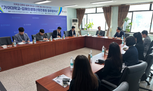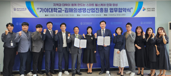 °¡¾ß´ëÇб³(ÃÑÀå ¾È»ó±Ù)´Â 2025³â 10¿ù 24ÀÏ(±Ý) ±³³» ȸÀǽǿ¡¼ ±èÇØÀÇ»ý¸í»ê¾÷ÁøÈï¿ø(¿øÀå ±èÁ¾¿í)°ú ½º¸¶Æ® ÇコÄÉ¾î ½Ç¹«¿ª·® °È ¹× ÇöÀå ±â¹Ý ±³À° ½ÇÇöÀ» À§ÇÑ ¾÷¹«Çù¾à(MOU)À» ü°áÇß´Ù.