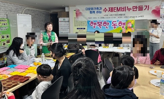 »çÇϱ¸ ¿©¼º´ÜüÇùÀÇȸ(ȸÀå ¹ÚÁø¼÷)´Â Áö³ 28ÀÏ, Áö¿ª ³» ´Ù¹®È°¡Á¤ 10°¡Á¤°ú ÇÔ²² ¡®¼öÁ¦ EMºñ´© ¸¸µé±â üÇèÇà»ç¡¯¸¦ °³ÃÖÇß´Ù. À̹ø Çà»ç´Â °¡Á¤ ³» ģȯ°æ »ýȰÀ» ½ÇõÇϰí, ´Ù¹®È°¡Á¤°úÀÇ ±³·ù¸¦ ÅëÇØ µû¶æÇÑ ¼ÒÅë°ú ÈÇÕÀÇ ÀåÀ» ¸¶·ÃÇϱâ À§ÇØ ÃßÁøµÆ´Ù.