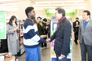| ¹ÚÇüÁØ ºÎ»ê½ÃÀåÀÌ ÁÖ¿ä °ü±¤Áö¸¦ ã¾Æ ¿Ü±¹ÀÎ °ü±¤°´°ú ÀλçÇϰí ÀÖ´Ù. ºÎ»ê½Ã Á¦°ø |
