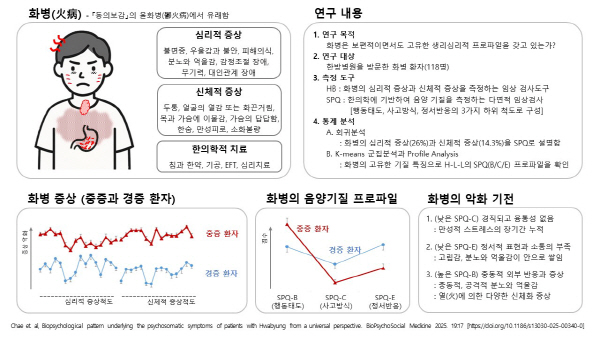 ºÎ»ê´ëÇб³(ÃÑÀå ÃÖÀç¿ø)´Â Çѱ¹ °íÀ¯ÀÇ ¹®ÈÀû ¹è°æ¿¡¼ ¹ß»ýÇÏ´Â ½É½ÅÁúȯÀ¸·Î ÀνĵŠ¿Â ¡®Èº´(Hwabyung)¡¯ÀÇ Á¤½Åº´¸®Àû ÀÓ»ó Æ¯Â¡À» ±Ô¸íÇÑ ¿¬±¸ ³í¹®ÀÌ ÃÖ±Ù ±¹Á¦ ÇмúÁö ¡º¹ÙÀÌ¿ÀÇÇÁöÄÚ¼Ò¼È ¸Þµð½¼(BioPsychoSocial Medicine)¡» ¿Â¶óÀÎÆÇ 10¿ù 30ÀÏÀÚ¿¡ °ÔÀçµÆ´Ù°í 4ÀÏ ¹àÇû´Ù.