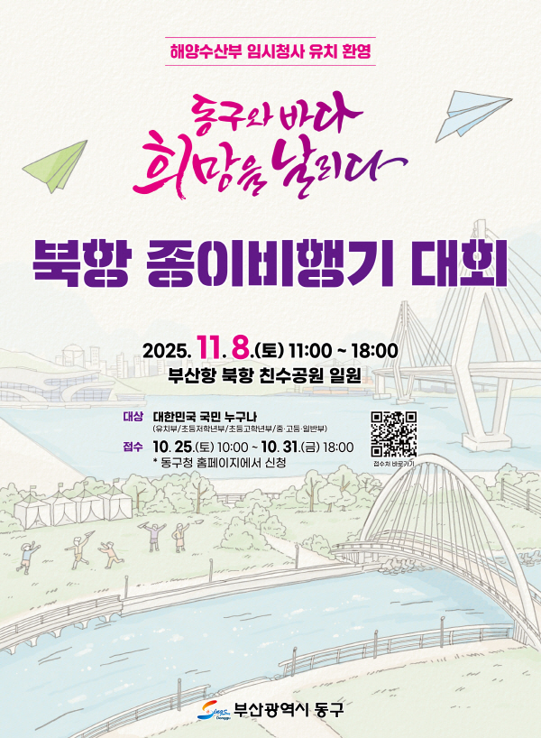 ºÎ»ê µ¿±¸´Â ¿À´Â 11¿ù 8ÀÏ ºÎ»êÇ× ºÏÇ× Ä£¼ö°ø¿ø¿¡¼ ¡®ºÏÇ× Á¾À̺ñÇà±â ´ëȸ(µ¿±¸¿Í ¹Ù´Ù, Èñ¸ÁÀ» ³¯¸®´Ù)¡¯¸¦ °³ÃÖÇÑ´Ù°í ¹àÇû´Ù. Çà»ç´Â ¿ÀÀü 11½ÃºÎÅÍ ¿ÀÈÄ 6½Ã±îÁö ÁøÇàµÇ¸ç, Á¾À̺ñÇà±â ³¯¸®±â ´ëȸ¸¦ ºñ·ÔÇØ °ø¿¬°ú üÇèȰµ¿ µî ´Ùä·Î¿î ÇÁ·Î±×·¥ÀÌ ¸¶·ÃµÈ´Ù.