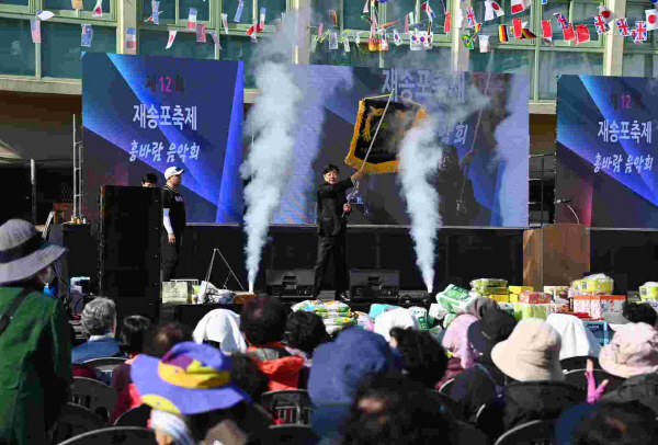 À̾îÁø ¡®Àç¼ÛÆ÷ Èï¹Ù¶÷À½¾Çȸ¡¯¿¡¼´Â Ȳ¹Î¿ì¡¤È²¹ÎÈ£ ÇüÁ¦ÀÇ Æ¯º°°ø¿¬ÀÌ ÆîÃÄÁ® ÃàÁ¦ÀÇ ¿±â¸¦ ´õÇß°í, ¸¶Áö¸· ¼ø¼·Î ÁøÇàµÈ °æÇ°Ãß÷ Çà»ç¿¡¼´Â Âü°¡ÀÚµéÀÇ È¯È£ ¼Ó¿¡ Çà»ç°¡ ¸¶¹«¸®µÆ´Ù.
