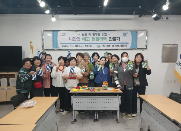 ¿¬Á¦±¸ ¿¬»ê8µ¿(µ¿Àå À¯¼öÇö)Àº 10¿ù 31ÀÏ Áֹΰú ÇÔ²²ÇÏ´Â ¡®³ª¸¸ÀÇ ¿¡ÄÚ ÅÒºí·¯¹é ¸¸µé±â¡¯ Ư°À» ÁøÇàÇß´Ù. À̹ø Ư°Àº Áö¿ªÁֹΠ15¸íÀÌ Âü¿©ÇßÀ¸¸ç, ¾ç¸»¸ñÀ» ÀçȰ¿ëÇÏ¿© ÅÒºí·¯¹éÀ» Á÷Á¢ ¸¸µé¾î º¸´Â üÇè ½Ã°£À» °¡Á³´Ù.