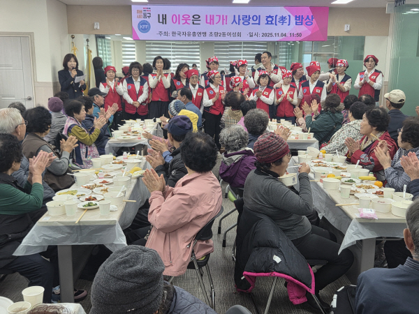 À̹ø Çà»ç´Â ÀÚÀ¯ÃÑ¿¬¸Í ÃÊ·®2µ¿¿©¼ºÈ¸ÀÇ ´ëÇ¥ÀûÀΠȰµ¿À¸·Î, ¸Å³â ¾î¸£½Å 80¿© ¸í¿¡°Ô µû¶æÇÑ ½Ä»ç¸¦ ´ëÁ¢Çϸç ÀÌ¿ô °£ Á¤À» ³ª´©´Â ¶æ±íÀº È¿(üø) ³ª´®ÀÇ ÀÚ¸®·Î ÀÚ¸®¸Å±èÇß´Ù.