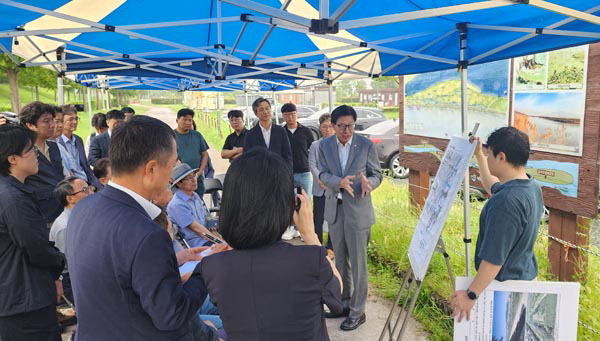| ¹ÚÇüÁØ ºÎ»ê½ÃÀåÀÌ ±¹°¡À¯»êû ÀÚ¿¬À¯»êÀ§¿øÈ¸¿Í ÇÔ²² ³«µ¿° ÀÏ´ë ÇöÀåÀ» ´ä»çÇØ ±³·® °Ç¼³ Çʿ伺À» ¼³¸íÇϰí ÀÖ´Ù. ºÎ»ê½Ã Á¦°ø |