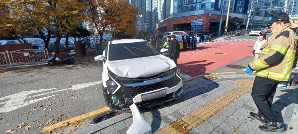ÇØ´ç Â÷·®ÀÌ À¯ÅÏÇÑ °÷Àº Áß¾Ó¼±ÀÌ ¾ø´Â À̸鵵·Î ±¸°£ÀÎ °ÍÀ¸·Î ¾Ë·ÁÁ³´Ù. Ææ½º°¡ ÀÖ¾úÁö¸¸, Â÷·®Àº Ææ½º¸¦ ¶Õ°í ¸ð³à¸¦ Ãæ°ÝÇß´Ù.