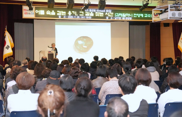À̹ø °¿¬Àº¡®¾îµÒ ¼ÓÀ» °È´Â ¿ë±â, ±× ±æÀ» ã´Â ½Ã°£¡¯À» ÁÖÁ¦·Î ÁøÇàµÆÀ¸¸ç, ³²±¸¹Î 250¿© ¸íÀÌ Âü¼®ÇØ ¼ºÈ²À» ÀÌ·ð´Ù. Àü¿µ¾Ö ±³¼ö´Â ´©±¸¿¡°Ô³ª ½±°Ô ÁÖ¾îÁöÁö ¾Ê´Â ¡®³ªÀÇ ÀÚ¸®¡¯¸¦ ã¾Æ°¡´Â ¿©Á¤°ú º¸ÀÌÁö ¾Ê´Â ±æÀ» °É¾î¿Â °æÇèÀ» Áø¼ÖÇÏ°Ô µé·ÁÁÖ¸ç ¡°¼¼»ó¿¡¼ ³» ÀÚ¸®°¡ ½±°Ô ÁÖ¾îÁö´Â ¹ýÀº ¾ø°í, ±æÀÌ º¸ÀÌÁö ¾Ê´Â ½ÃÀýÀº ´©±¸¿¡°Ô³ª ã¾Æ¿Â´Ù¡±¸ç ¡°´«¾ÕÀÌ Ä¯Ä¯Çß´ø ½Ã°£ ¼Ó¿¡¼µµ ÇÑ °ÉÀ½À» ³»µóÀ» ¶§ ±æÀº ¼¼È÷ ¸ð½ÀÀ» µå·¯³´Ù¡±°í ÀüÇß´Ù.