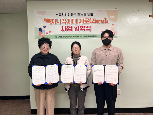 ºÎ»ê µ¿·¡±¸ ¼ö¹Îµ¿ ÇàÁ¤º¹Áö¼¾ÅÍ(µ¿Àå Á¤¿µ¹Ì)´Â Áö³ 11¿ù 28ÀÏ ¼ö¹Îµ¿ Áö¿ª»çȸº¸ÀåÇùÀÇü(À§¿øÀå ¾È¸í¼÷) ¹× µ¿·¡ÇູÁÖÅÃ(°ü¸®¼ÒÀå À̽ÂÅÂ)°ú ÇÔ²² ¡®º¹Áö »ç°¢Áö´ë Á¦·Î(Zero) »ç¾÷¡¯ Çù¾àÀ» ü°áÇß´Ù°í ¹àÇû´Ù.