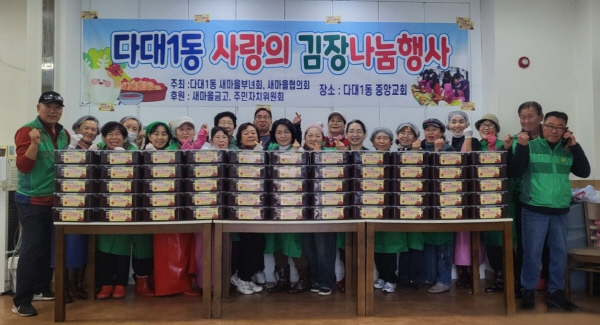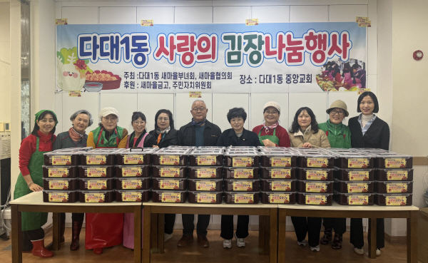 ºÎ»ê »çÇϱ¸ ´Ù´ë1µ¿ »õ¸¶À»ºÎ³àȸ´Â Áö³´Þ 27ÀÏ ¡®»ç¶ûÀÇ ±èÀ峪´® Çà»ç¡¯¸¦ °³ÃÖÇØ ȸ¿øµéÀÌ Á¤¼º²¯ ´ã±Ù ±èÀå±èÄ¡¸¦ Áö¿ª ³» Ãë¾à°èÃþ °¡Á¤°ú °æ·Î´ç µî 150¼¼´ë¿¡ Àü´ÞÇß´Ù.