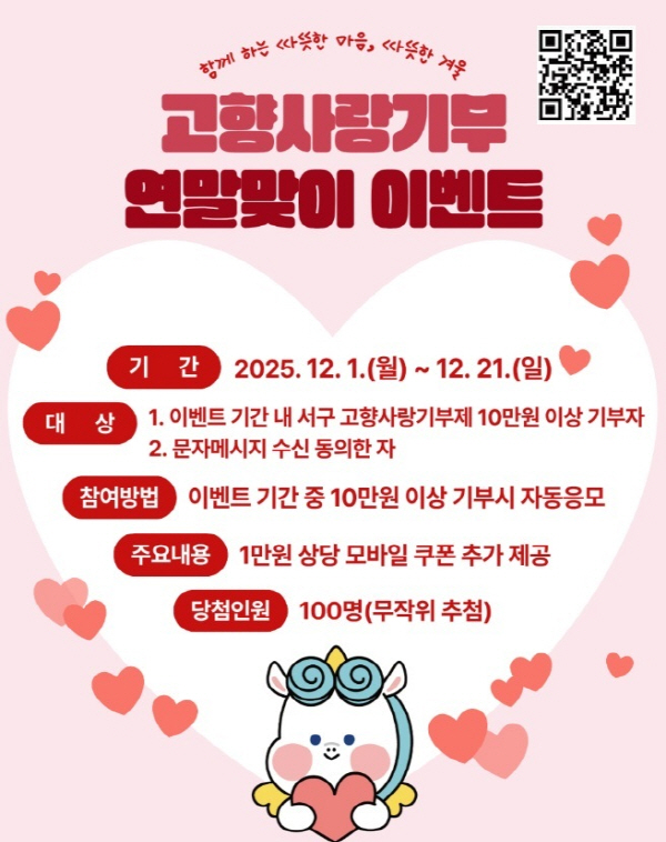 ¼±¸ °ü°èÀÚ´Â ¡°À̹ø ¿¬¸» À̺¥Æ®¸¦ ÅëÇØ ´õ ¸¹Àº ºÐµé²²¼ °íÇâ»ç¶û±âºÎÁ¦¿¡ °ü½ÉÀ» °®°í Âü¿©ÇØ ÁÖ½Ã±æ ¹Ù¶õ´Ù¡±¸ç ¡°±âºÎ±ÝÀº ÁֹΠº¹¸® ÁõÁø°ú Áö¿ª°æÁ¦ Ȱ¼ºÈ¸¦ À§ÇØ ¼ÒÁßÈ÷ Ȱ¿ëÇϰڴ١±°í ¹àÇû´Ù.