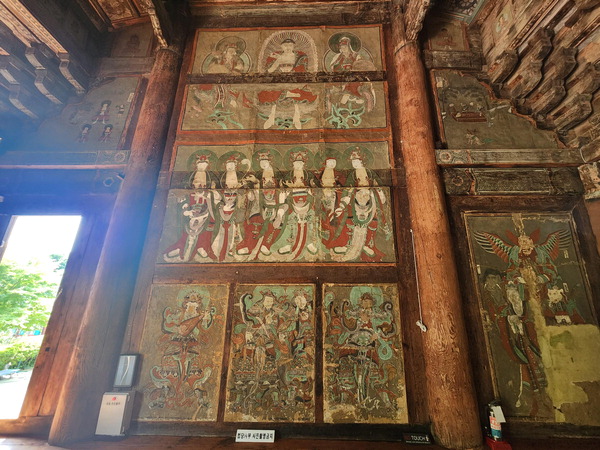 1992³â 1¿ù º¸¹°·Î ÁöÁ¤µÈ ½ÅÈï»ç ´ë±¤ÀüÀº ¸ñÁ¶ °Ç¹°¿¡ È뺮 ±¸Á¶·Î ÀÎÇØ °Ç¹°ÀÌ ±â¿ï¾îÁö°í º®¿¡ ±ÝÀÌ °¡´Â µî ³ëÈÄÈ­°¡ ½É°¢ÇØ ºÎºÐ º¸¼ö´Â ¾î·Æ´Ù°í ÆÇ´Ü, 2023³â 6¿ù 65¾ï ¿øÀ» µé¿© ÇØÃ¼ ÈÄ º¹¿ø ¹æ½ÄÀ¸·Î Àüü º¸¼ö°ø»ç¿¡ Âø¼öÇß´Ù. ±¹³»¿¡¼­´Â º®È­¸¦ Á¸Ä¡ÇÑ Ã¤ ö°Å¸¦ ÁøÇàÇÑ Ã¹ »ç·Ê¿´´Ù. ÇÏÁö¸¸ Áøµ¿À¸·Î ÆÄ¼ÕµÉ À§ÇèÀÌ Á¦±âµÇ¸é¼­ »ç½Ç»ó °Ç¹° ÇØÃ¼ ÀÛ¾÷Àº Áß´ÜµÈ »óÅ´Ù. ÇöÀç ±¹°¡À¯»êû ±â¼úÀ§¿øÈ¸°¡ º®È­¸¦ Á¸Ä¡ÇÒÁö¸¦ ³õ°í °ËÅäÇϸ鼭 °á·ÐÀÌ ´Ê¾îÁö¸é¼­ ¾ÖÃÊ ³»³â±îÁö´ø Áذø °èȹµµ ³»ÈijâÀ¸·Î ¿¬ÀåµÉ Àü¸ÁÀÌ´Ù.