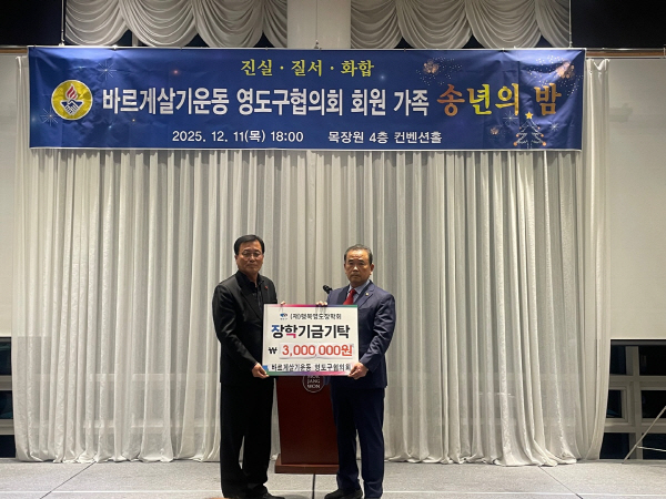 ¹Ù¸£°Ô»ì±â¿îµ¿ ¿µµµ±¸ÇùÀÇȸ(ȸÀå ¿ÁÁ¾¼®)´Â Áö³ 12¿ù 11ÀÏ ¹Ù¸£°Ô »ì±â¿îµ¿ ¿µµµ±¸ÇùÀÇȸ ¡®È¸¿ø °¡Á· ¼Û³âÀÇ ¹ã¡¯ Çà»ç¿¡¼ ¿ì¼öÇÑ Áö¿ªÀÎÀç ¾ç¼ºÀ» À§ÇØ (Àç)Çູ¿µµµÀåÇÐȸ¿¡ ÀåÇбâ±Ý 300¸¸ ¿øÀ» ±âŹÇß´Ù.