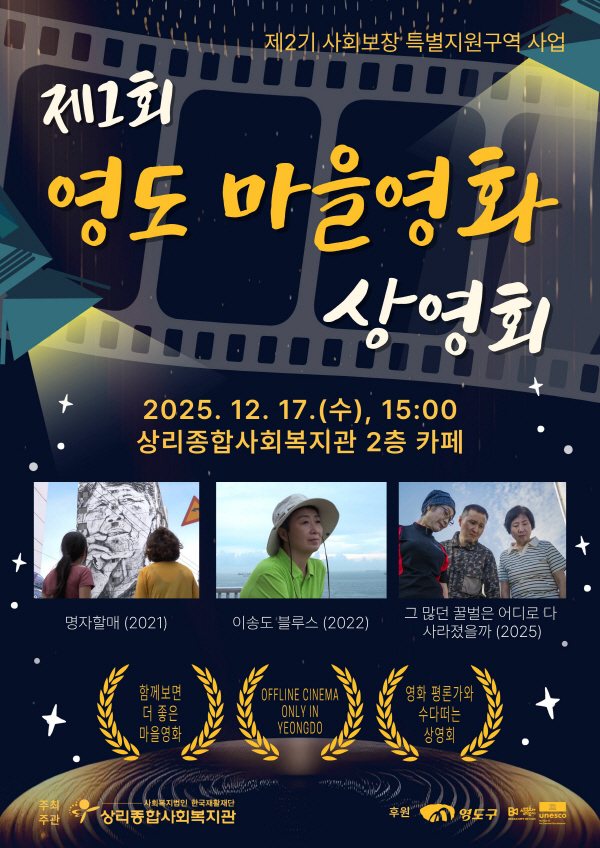 ¿µµµ±¸ µ¿»ïµ¿¿¡ À§Ä¡ÇÑ »ó¸®Á¾ÇÕ»çȸº¹Áö°ü(°üÀå ±è¿µ½Å)Àº ¿À´Â 12¿ù 17ÀÏ(¼ö) ¡®Á¦1ȸ ¿µµµ ¸¶À»¿µÈ »ó¿µÈ¸¡¯¸¦ °³ÃÖÇÑ´Ù.