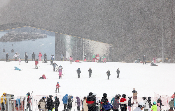 Àü±¹ °÷°÷¿¡ ¸¹Àº ´«ÀÌ ¿¹º¸µÈ 13ÀÏ °­¿ø Ãáõ½Ã ¿¤¸®½Ã¾È°­ÃÌ ½ºÅ°Àå¿¡¼­ ¸¹Àº ½ºÅ°¾î¡¤½º³ëº¸´õ°¡ Æø¼³ ¼Ó¿¡ ½½·ÎÇÁ¸¦ ³»·Á¿À¸ç °Ü¿ïÀ» Áñ±â°í ÀÖ´Ù. ¿¬ÇÕ´º½º