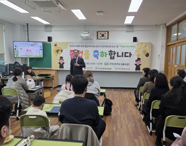 ºÎ»ê »ç»ó±¸(±¸Ã»Àå Á¶º´±æ)´Â »ç»ó±¸Àå¾ÖÀκ¹Áö°ü(°üÀå Á¤ÈñÁ¤)ÀÌ Áö³ 12¿ù 13ÀÏ, ÃʵîÇб³ ÀÔÇÐÀ» ¾ÕµÐ ¹ß´ÞÀå¾Ö µî ¾Æµ¿ÀÇ Çб³ ÀûÀÀ·Â°ú »çȸ¼º Çâ»óÀ» À§ÇÑ ¿¹ºñÇб³ ÇÁ·Î±×·¥ ¡ºStep Forward¡» Á¹¾÷½ÄÀ» ÁøÇàÇß´Ù°í ¹àÇû´Ù.