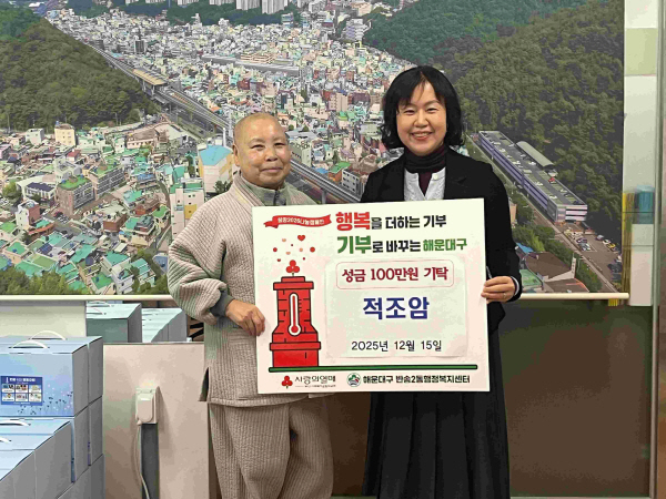 ÇØ¿î´ë±¸ ¹Ý¼Û2µ¿ ÀûÁ¶¾ÏÀº Áö³ 15ÀÏ ¹Ý¼Û2µ¿ ÇàÁ¤º¹Áö¼¾ÅÍ(µ¿Àå À̼±ÀÚ)¿¡ ¼º±Ý 100¸¸ ¿øÀ» ±âŹÇß´Ù.