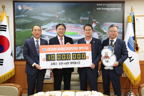 °øÁ÷ ÅðÀÓÀ» ¾ÕµÐ °æ³² ±èÇØ½Ã ÀåÆÇ±Ô ±âȹÁ¶Á¤½ÇÀå°ú ȲÈñö ³ó¾÷±â¼ú¼¾ÅͼÒÀåÀÌ Áö¿ª ÀÎÀç ¾ç¼ºÀ» À§ÇØ °¢°¢ 500¸¸¿øÀÇ ÀåÇбÝÀ» ±âŹÇß´Ù.