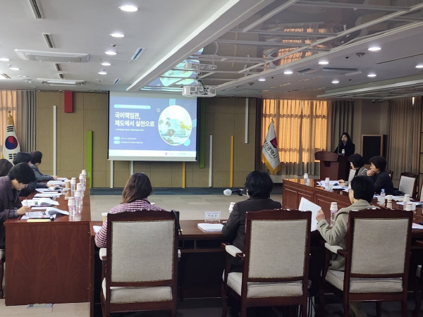 À̳¯ ±³À°¿¡¼± µ¿¾Æ´ë ±¹¾î¹®È¿ø ¹ÚÁÖÇü Ưº°¿¬±¸¿øÀÌ ¡®±¹¾îÃ¥ÀÓ°ü, Á¦µµ¿¡¼ ½ÇõÀ¸·Î¡¯¸¦ ÁÖÁ¦·Î ±¹¾îÃ¥ÀÓ°ü Á¦µµÀÇ ÃëÁö¿Í ¿ªÇÒ, Á¦µµ ¿î¿µÀÇ ¹æÇâ¿¡ ´ëÇØ ¼³¸íÇß°í ±è¹ÎÁø Ưº°¿¬±¸¿øÀÌ ¡®¿Ã¹Ù¸¥ °ø°ø¾ð¾î »ç¿ëÇϱ⡯¶ó´Â ÁÖÁ¦·Î °ÀǸ¦ ÁøÇàÇß´Ù. ±³À° ÀÌÈÄ¿¡´Â ºÎ»ê½Ã ¹®È¿¹¼ú°ú ÁÖ°üÀ¸·Î ±¹¾îÃ¥ÀÓ°ü Á÷¹« ¿¬¼ö°¡ À̾îÁ³´Ù.