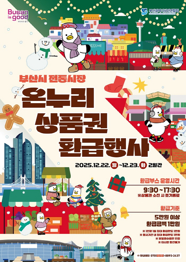 ºÎ»ê½Ã ±ÝÁ¤±¸(±¸Ã»Àå À±ÀÏÇö)´Â ÀüÅë½ÃÀåÀÇ È°¼ºÈ¿Í ÇÔ²² ¹Î»ý ȸº¹À» À§ÇØ ±¸¼¿À½Ã°Ô½ÃÀå µî °ü³» ÀüÅë½ÃÀå 4°³¼Ò¿¡¼ 12¿ù 22ÀϺÎÅÍ 12¿ù 23ÀϱîÁö 2Àϰ£ ±¸¸Å °í°´À» ´ë»óÀ¸·Î ¿Â´©¸®»óǰ±Ç ȯ±ÞÇà»ç¸¦ ÃßÁøÇÑ´Ù°í ¹àÇû´Ù.