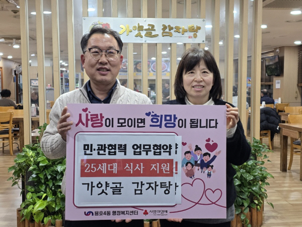 À̹ø Çù¾àÀº Áö¿ª»çȸ ³» ¼Ò¿ÜµÈ ÀÌ¿ôÀ» ¹ß±¼Çϰí, ¹Î°£°ú ÇàÁ¤ÀÌ ÇÔ²² Áö¼Ó °¡´ÉÇÑ ³ª´® ü°è¸¦ ±¸ÃàÇϱâ À§ÇØ ¸¶·ÃµÆ´Ù. °¡¾æ°ñ°¨ÀÚÅÁ ºÎ»ê ¿ëÈ£Á¡Àº 2026³âºÎÅÍ 2°³¿ù¿¡ ÇÑ ¹ø¾¿ ¿ëÈ£4µ¿ Àú¼ÒµæÃþ ÁֹΠ25¸í¿¡°Ô ½Ä»ç¸¦ Á¦°øÇϱâ·Î ¾à¼ÓÇß´Ù.