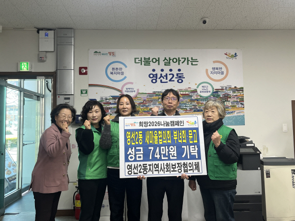 ¿µ¼±2µ¿ »õ¸¶À» 3°³ ´Üü´Â ¡¸Èñ¸Á2026 ³ª´®Ä·ÆäÀΡ¹¿¡ ¾ÕÀå¼, Æò¼Ò Áö¿ª ºÀ»çȰµ¿À¸·Î ´ÙÁ®¿Â ¿¬´ëÀÇ ÈûÀ» ¸ð¾Æ ÀÌ¿ôµ½±â ¼º±ÝÀ» Àü´ÞÇß´Ù. À̹ø ¼º±ÝÀº °ü³» Ãë¾à°èÃþ°ú º¹Áö »ç°¢Áö´ë °¡±¸¸¦ Áö¿øÇÏ´Â µ¥ »ç¿ëµÉ ¿¹Á¤ÀÌ´Ù.