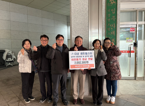 ºÎ»êÁø±¸ ºÎÀü2µ¿ Áֹμ¾ÅÍ(µ¿Àå À̺οµ)´Â 1¿ù 8ÀÏ, ´õ¼¥ ¼¾Æ®·²½ºÅ¸ ÀÔÁÖÀÚ ´ëǥȸÀÇ(´ëÇ¥ ±èÁö¿õ)¿¡¼ ¾î·Á¿î ÀÌ¿ôµéÀ» À§ÇØ ¼º±Ý 2,092,300¿øÀ» ±âŹÇß´Ù°í ¹àÇû´Ù.
