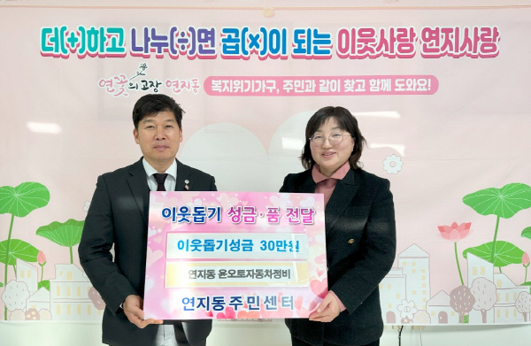 ºÎ»êÁø±¸ ¿¬Áöµ¿ À±¿ÀÅäÀÚµ¿Â÷Á¤ºñ(´ëÇ¥ À±Çö¼®)¿¡¼ Áö³ 9ÀÏ, ¿¬Áöµ¿ Áֹμ¾ÅÍ(µ¿Àå ¹Ú¹Ì¿Á) Èñ¸Á2026 ³ª´®Ä·ÆäÀÎ ¼º±Ý 30¸¸¿øÀ» ±âŹÇÏ¿´´Ù.