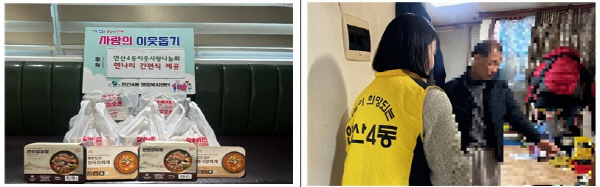 ¿¬Á¦±¸ ¿¬»ê4µ¿(µ¿Àå À̰¡¹Ì)Àº 1¿ù 15ÀÏ ¿¬»ê4µ¿ ÀÌ¿ô»ç¶û³ª´®È¸(ȸÀå À̰æÈñ)¿Í ÇÔ²² °ü³» Àú¼Òµæ ÁßÀå³â ¹× °Åµ¿ºÒÆí °¡±¸¸¦ À§ÇÑ ¡®¿¬³ª¸® ¿µ¾çÄÉ¾î °£Æí½Ä Áö¿ø»ç¾÷¡¯À» ½Ç½ÃÇß´Ù.