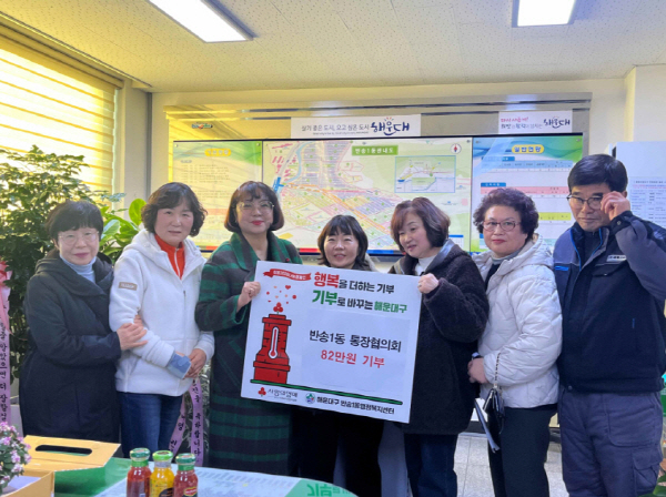 ¹Ý¼Û1µ¿ ÅëÀåÇùÀÇȸ(ȸÀå ±èµµÇü)´Â Áö³­ 15ÀÏ ¹Ý¼Û1µ¿ ÇàÁ¤º¹Áö¼¾ÅÍ(µ¿Àå Á¤À±ÁÖ)¿¡ ÀÌ¿ôµ½±â ¼º±Ý 82¸¸¿øÀ» ±âŹÇß´Ù.