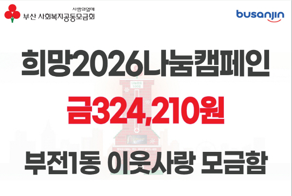 ºÎ»êÁø±¸ ºÎÀü1µ¿(µ¿Àå ¼³Ã¢¼ö)Àº µ¿¿¡ ºñÄ¡µÈ ¡®ÀÌ¿ô»ç¶û ¸ð±ÝÇÔ¡¯À» ÅëÇØ ¸ð±ÝµÈ 324,210 ¿øÀ» ºÎ»ê»çȸº¹Áö°øµ¿¸ð±Ýȸ¿¡ ±âŹÇß´Ù.
