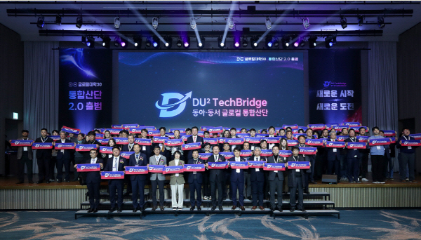 1ºÎ Çà»ç¿¡¼± ±â¾÷°ú ¿¬±¸ÀÚ¸¦ ÃÖÀûÀ¸·Î ¸ÅĪÇÏ´Â ¡®AI±â¹Ý ÅëÇÕ±â¼úÇ÷§Æû¡¯ÀÌ ½Ã¿¬µÅ ´«±æÀ» ²ø¾ú´Ù. ÀÌ¾î ¡®ÅëÇÕ»ê´Ü 2.0, DU©÷ TechBridge¡¯°¡ °ø½Ä Ãâ¹üÇÏ´Â ºñÀü¼±Æ÷½ÄÀÌ ÁøÇàµÆ´Ù. »õ·Ó°Ô Ãâ¹ßÇÏ´Â ¡®ÅëÇÕ»ê´Ü 2.0, DU©÷ Techbridge(µðÀ¯½ºÄù¾î Å×Å©ºê¸´Áö)¡¯´Â µ¿¾Æ´ë¿Í µ¿¼´ë ±¸¼º¿øÀÌ Âü¿©ÇÑ °ø¸ðÀüÀ» ÅëÇØ À̸§°ú ·Î°í°¡ ¼±Á¤µÆ´Ù.