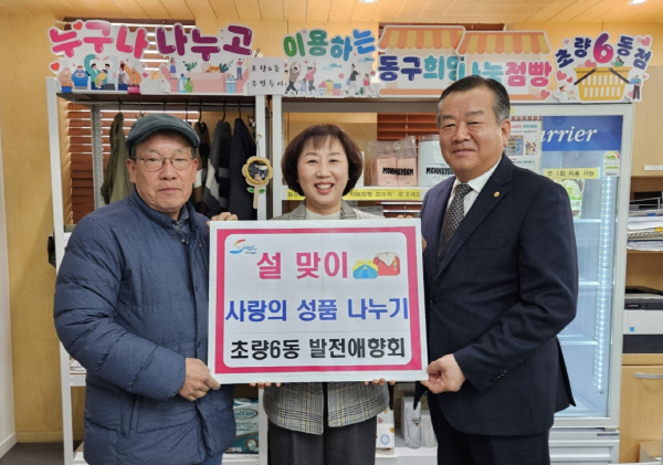 ºÎ»ê µ¿±¸ ÃÊ·®6µ¿ ¹ßÀü¾ÖÇâȸ(ȸÀå ¼®°©´ö)´Â Áö³ 4ÀÏ ¼³ ¸íÀýÀ» ¸ÂÀÌÇÏ¿© Áö¿ªÀÇ ¾î·Á¿î ÀÌ¿ôµéÀ» À§ÇÑ ¡¸»ç¶ûÀÇ ¼ºÇ° ³ª´©±â¡¹¸¦ ÃßÁøÇß´Ù.